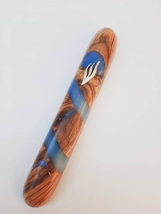 22 בית מזוזה 12 עץ זית ואפוקסי כחול
