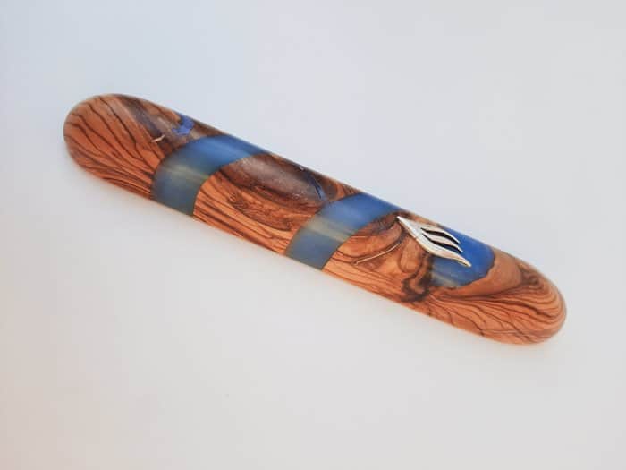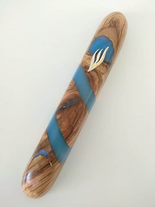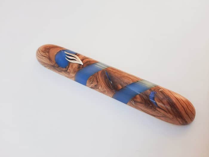 25 בית מזוזה 12 עץ זית ואפוקסי כחול