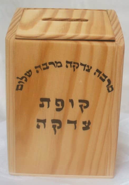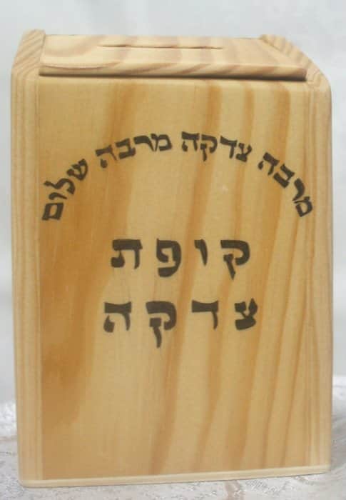 KU3 קופת צדקה עץ קרולינה טבעי עם כיתוב