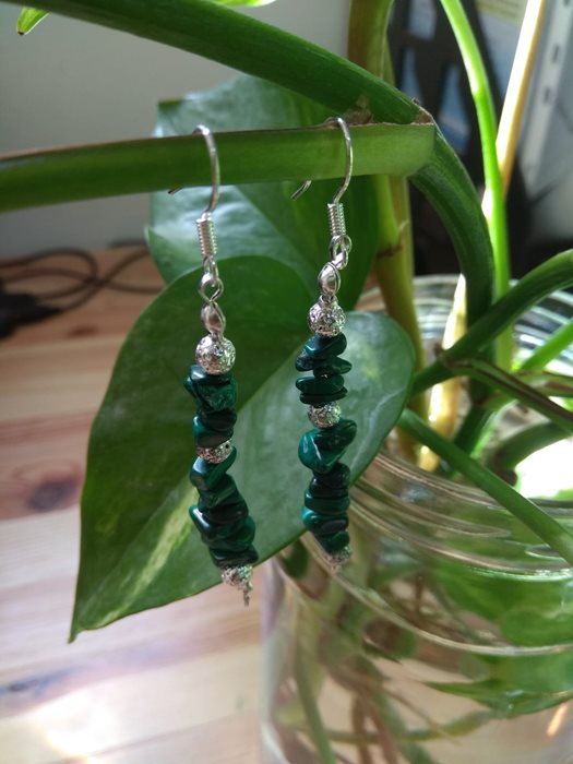 AG-1 עגיל מלכית ירוק וכסוף.