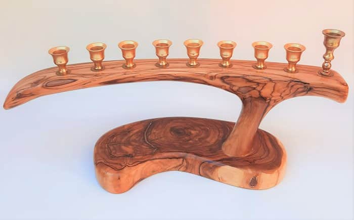 פריט אומנותי המגלם בתוכו את ערכי חג החנוכה יחד עם יופיו הנצחי של עץ הזית. המבנה המעוגל והאורגני משמר את הטבעיות של העץ ומציג דפוסים יחודיים שמאפיינים רק את עץ הזית.